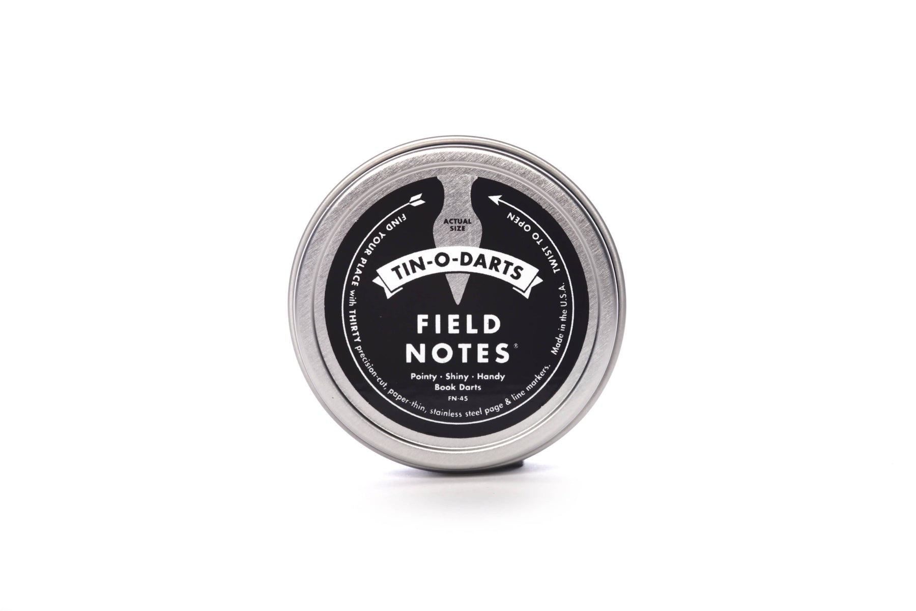 The fusion of a bookmark and a paperclip, a Book Dart can be easily slipped into any book to not only neatly mark your page, but also to point to the exact line where you left off. They’re great for fiction, memoirs, manuals, planners, notebooks... heck, any document or stack of paper you could name. Our FN-45 “Tin-O-Darts” is a seamless 2-1/2” pressed tin containing 30 gleaming stainless-steel Book Darts. They’re paper-thin and unobtrusive, but easy to find. They cling tightly to the page, but are easy to apply and remove without causing damage. You’ll find all sorts of uses for them.