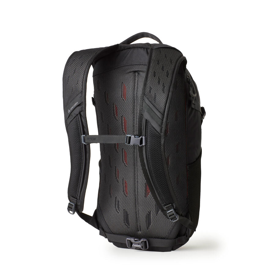 - Arneses de hombro acolchados de malla de aire con hebilla de correa de esternón de una mano y presillas para enrutamiento de hidratación