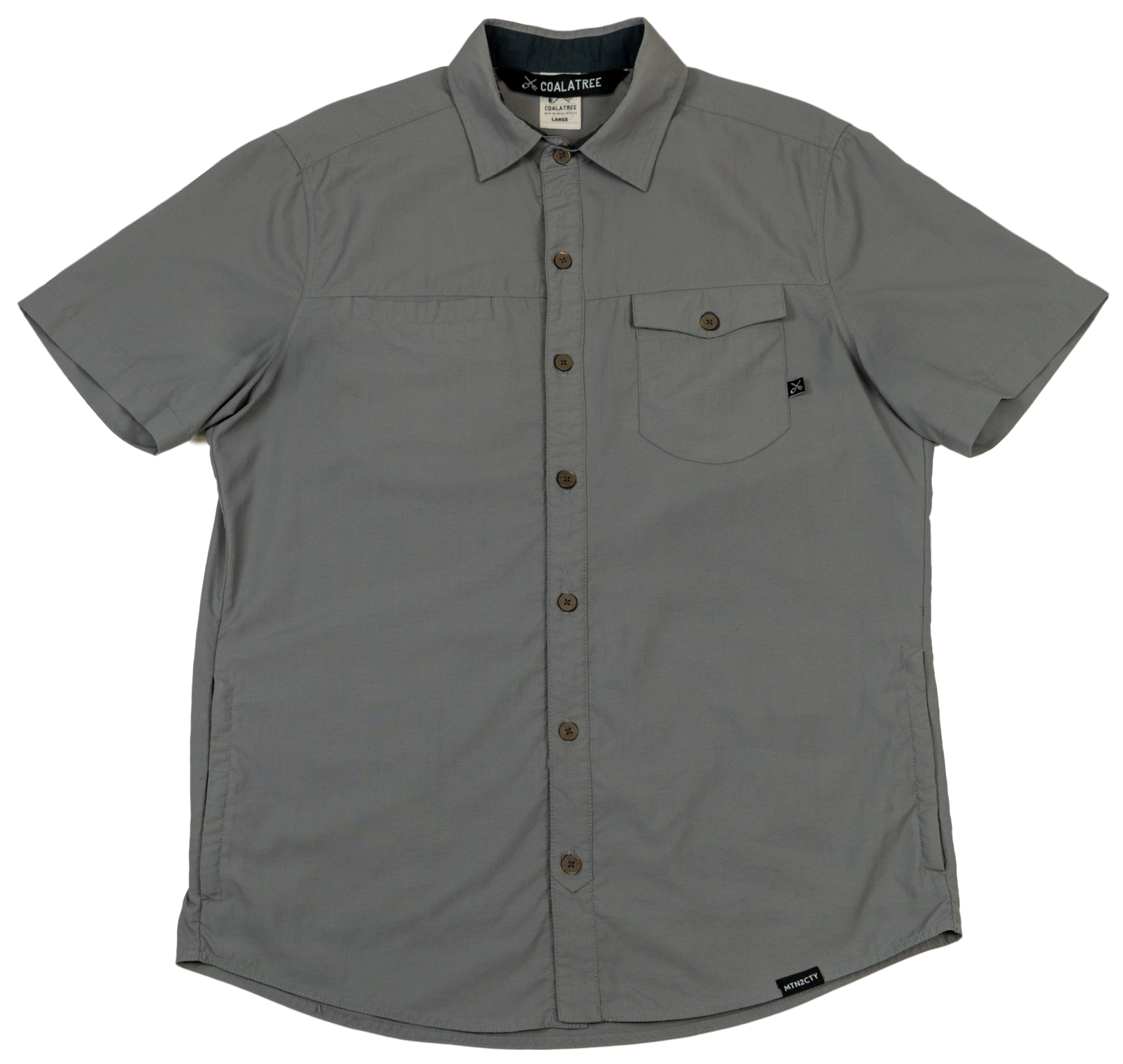 bluesign® 52% Ice.Cafe, 48% Nylon. Each button-up contains 3 cups recycled coffee grounds and 10 recycled plastic bottles.