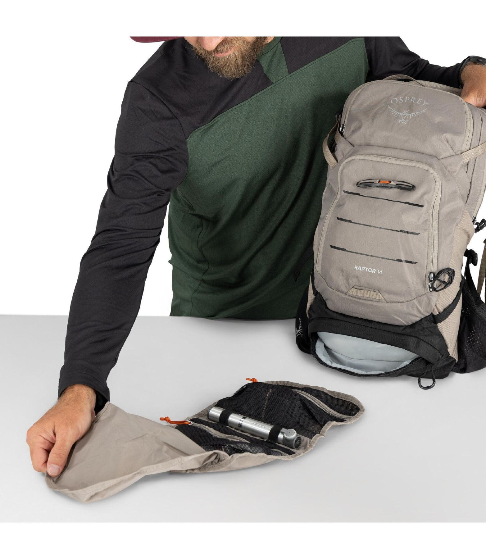 Ride all day with this spacious, premium mountain bike hydration pack and included 2.5-liter reservoir. Hipbelt pockets on the Raptor 14 Extended Fit grant in-motion access to snacks or phone, and winged shoulder harness and airmesh wrap hipbelt keep your ride stable and secure. Bike-specific features like a tool roll and sunglasses pocket will delight even the most serious riders.
