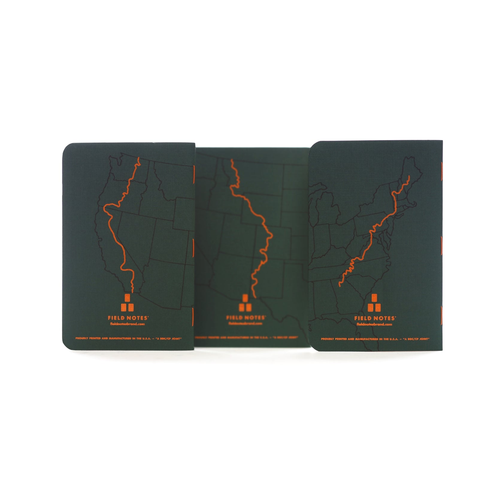 The Field Notes Quarterly Edition for the Summer of 2021 is the hiking themed “Trailhead” Edition. Wherever your personal journey leads you, use these Memo Books to make your plans and record your adventures. These memo-books feature sturdy forest-green linen covers with an application of orange Crown Foil surrounding 48 Ruled “vanilla” pages, and they’re bound together with orange staples. The back cover of each book in the 3-Pack features one of America’s “Big Three” trails: The Pacific Crest, Continental Divide, and the mighty Appalachian. In addition, a flyleaf is filled with facts, tips, and a “General Guide to Life on the Trail."